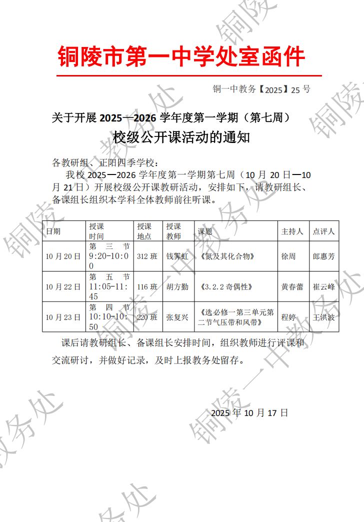 下一篇:关于开展 2025—2026 学年度第一学期(第八周) 校级公开课活动的通知